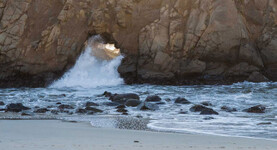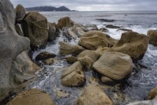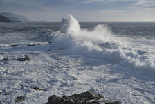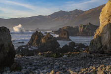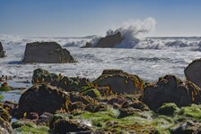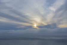 Land & Ocean meet, enveloped in Earth's thin skin of air.